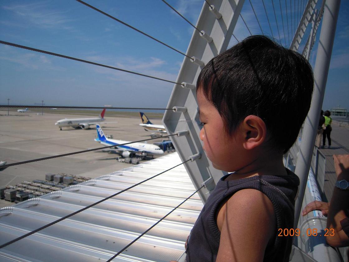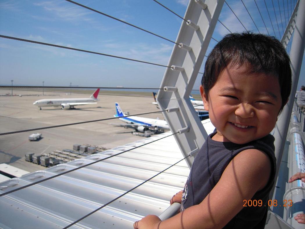 ようやく父ちゃんの姿を見送り、次は飛行機が無事に飛び立つまでをデッキで見送り☆