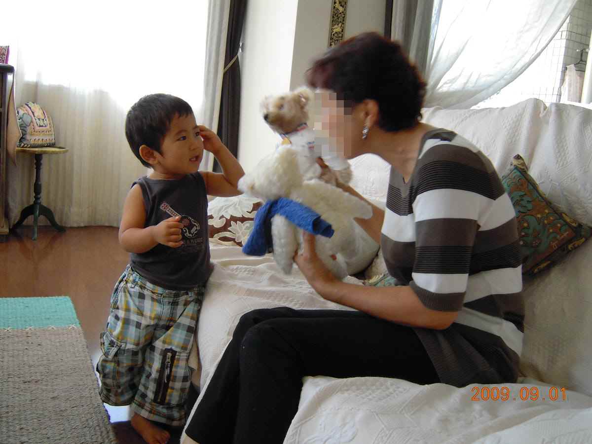 M恵のところに遊びに行って、3ヶ月違いのつっくんと遊んだり。