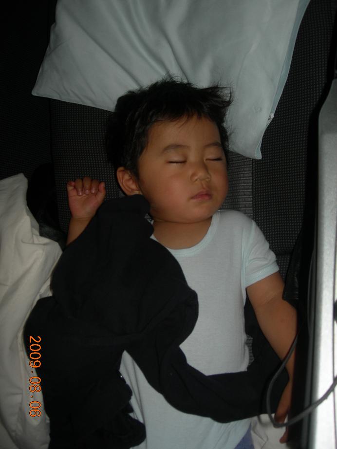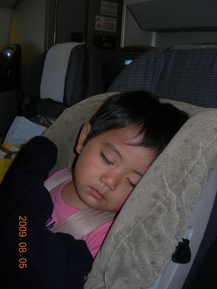 けっこうな移動で疲れたのか、離陸すぐに寝てくれた♪