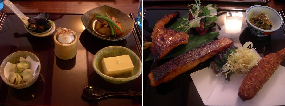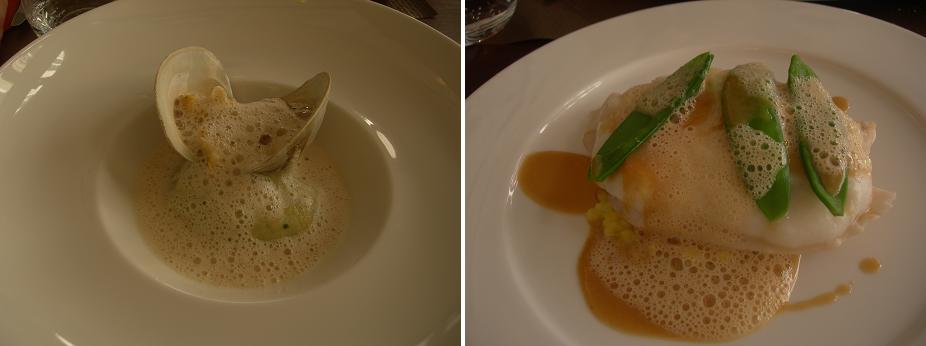 ちなみに左は(ドでかい!)アサリの前菜、右がメインの白身魚とホタテ。