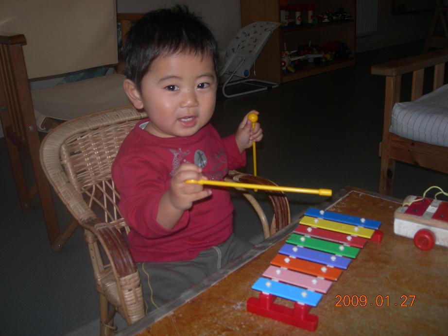 最初、かなりこのミニ鉄琴に食いついてたよ。
