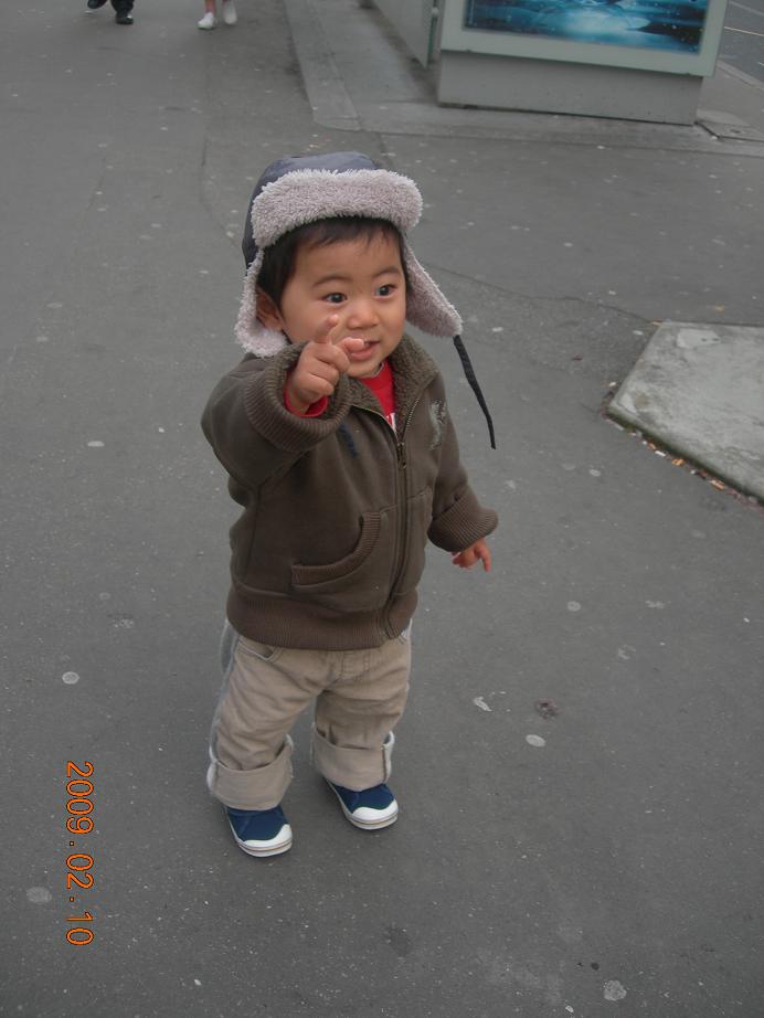 すれ違う人に手を振ったり、通り過ぎる車とかを真剣に観察(?)してたり。