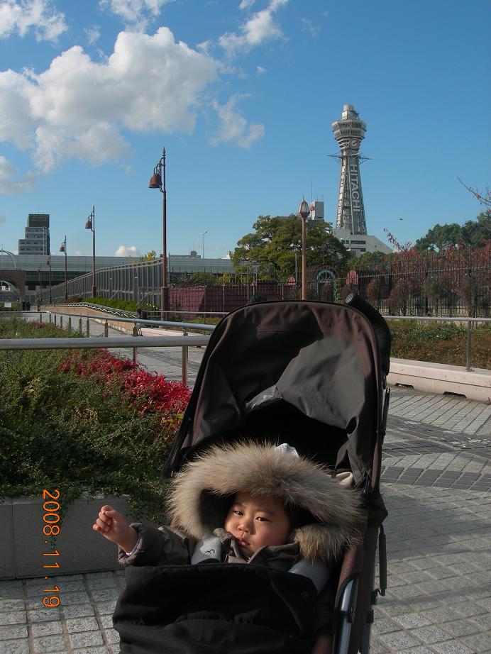 天王寺公園(?)を通ってまずは息子の後ろに見える通天閣!