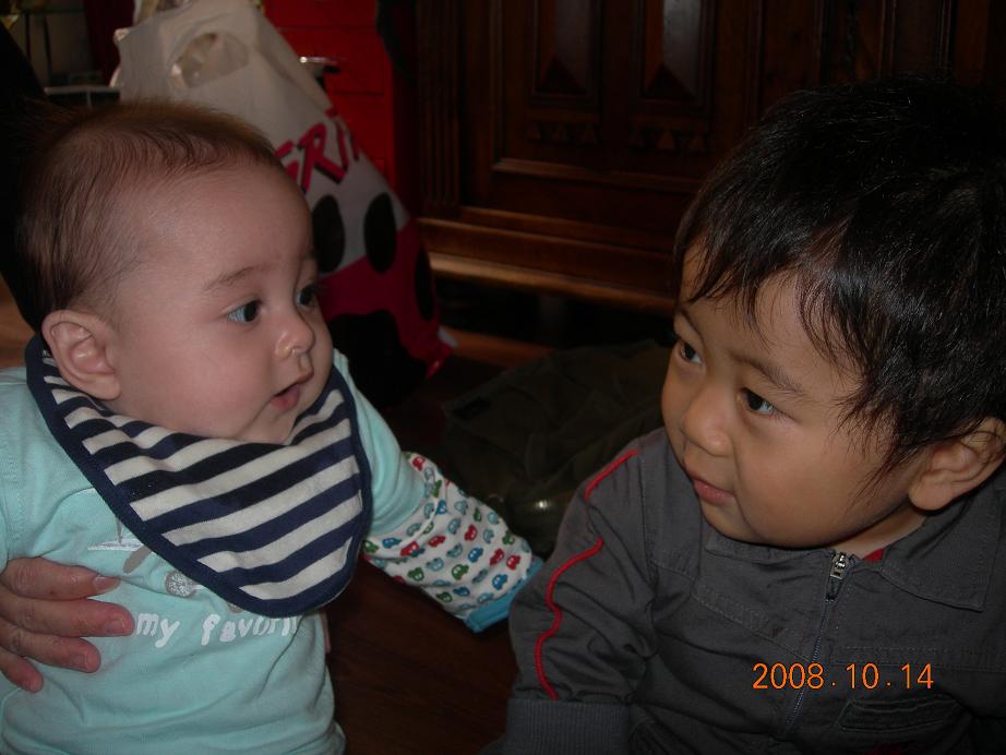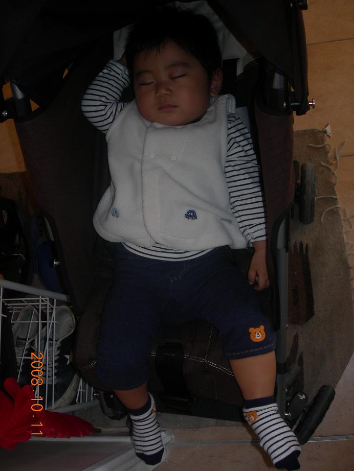 バンボに座ってる松くんと微妙な距離の息子(笑)。