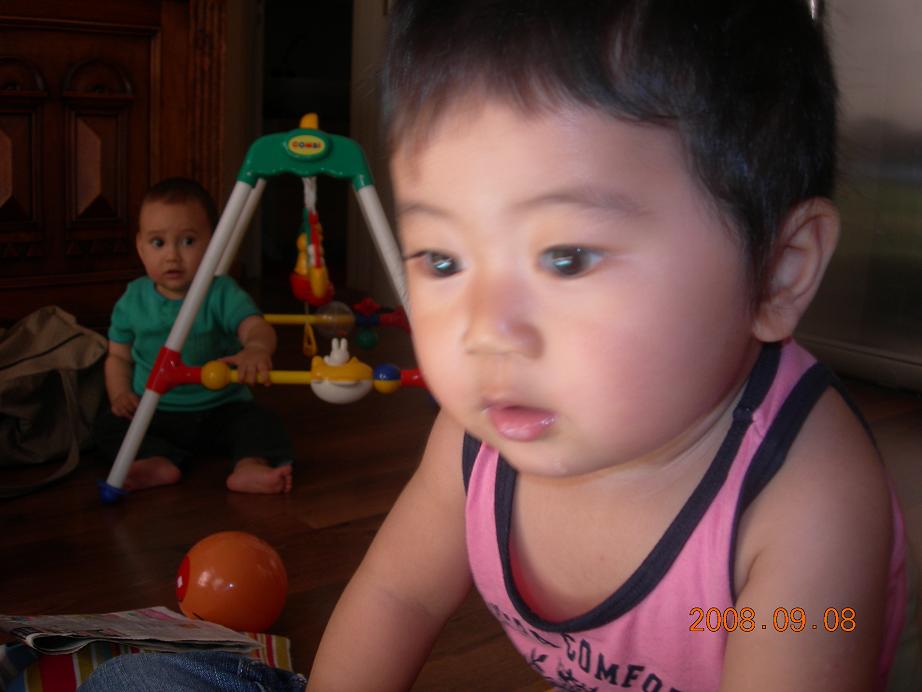 夜は布団から降りてグルグルハイハイしてるしで、かなり活発になってきた。