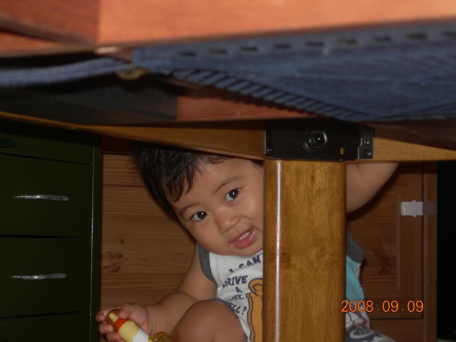 最近、机を使っていないいないばぁをするのが大好き♪
