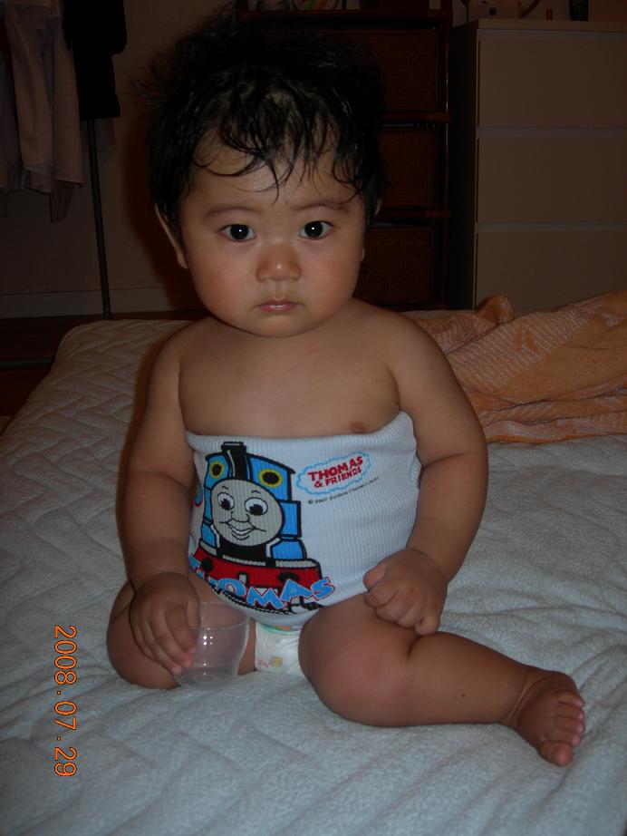 母に持ってきてもらった腹巻だけで寝かせても汗だくの子。。