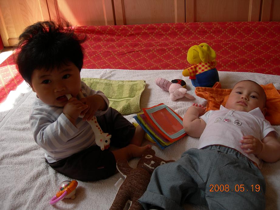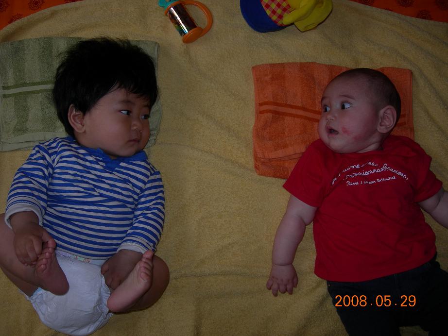 エリオくんもすっかりおっきくなって、腰が据わればリョウといよいよ遊べるかな~って。
