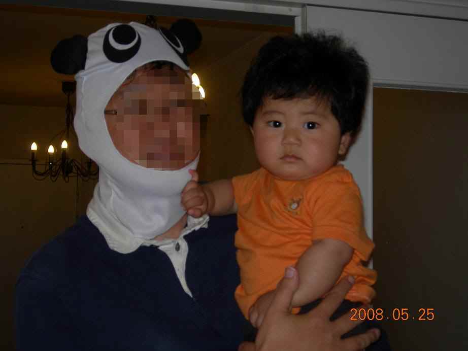 パンダ男に抱かれる息子♪