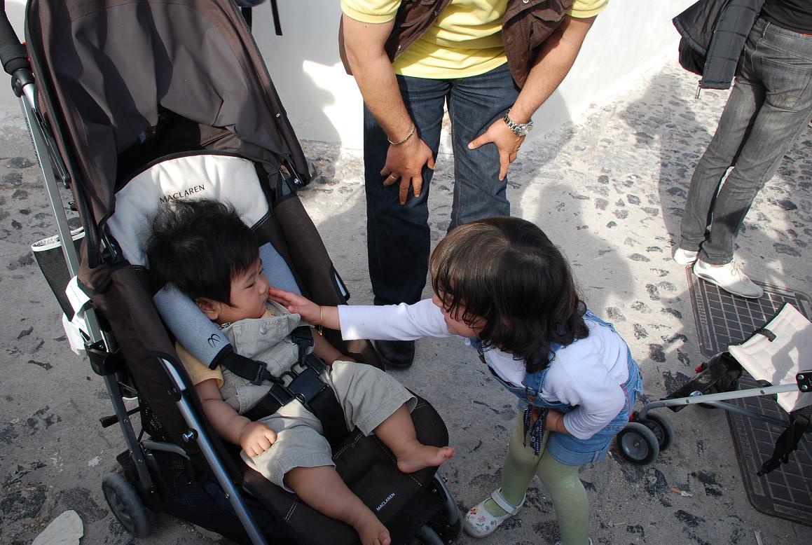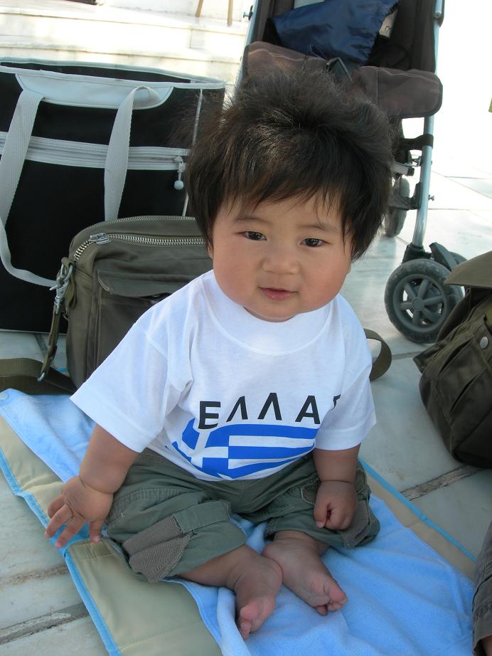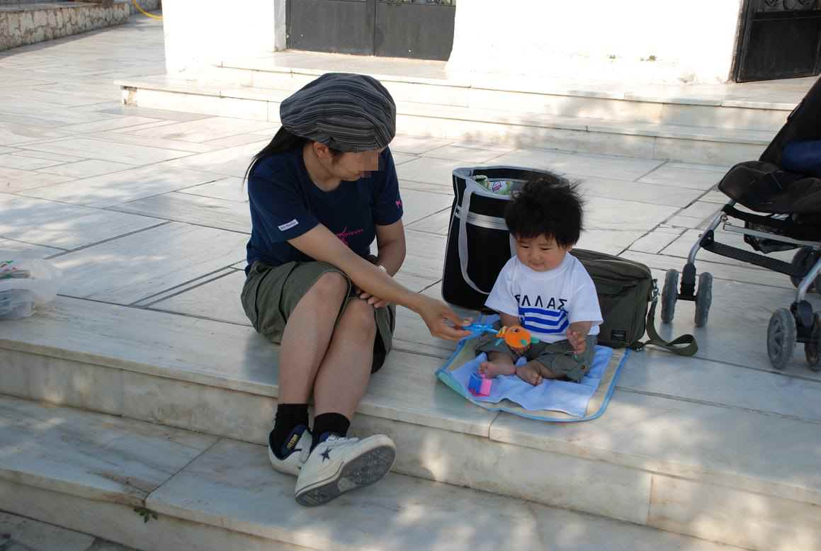 座らせ、アクロポリスと海をバックにいろんなポーズを