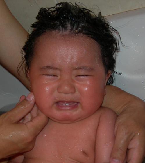 バスタブのないお風呂タイムでリョウさまは毎日ギャン泣き。