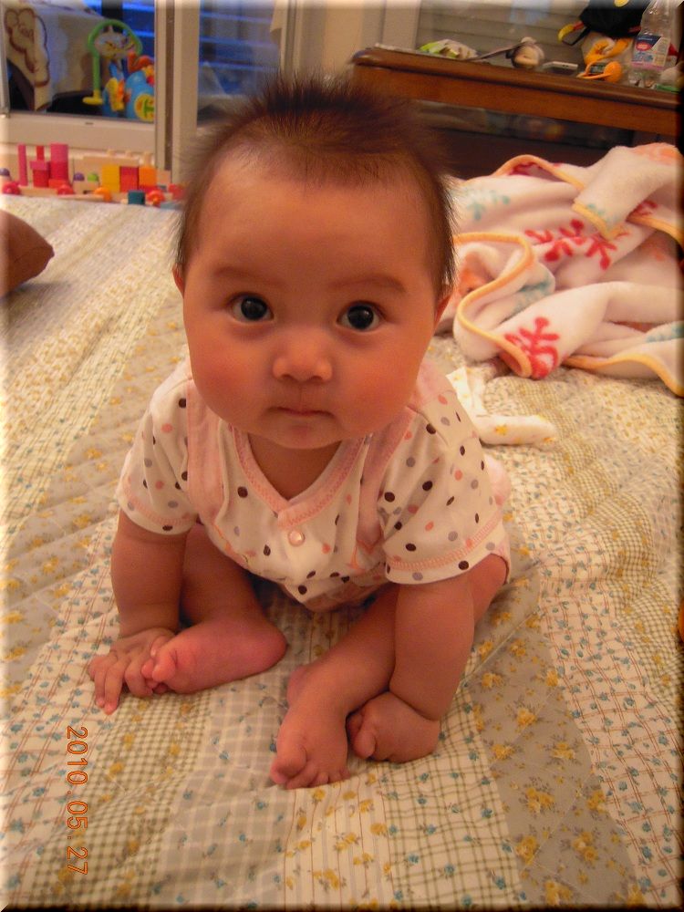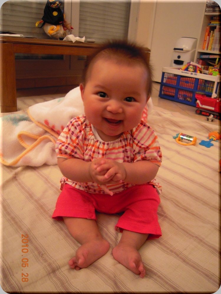 リョウよりも寝返りするのが早くできた分、お転婆な子になりそうです・・・。