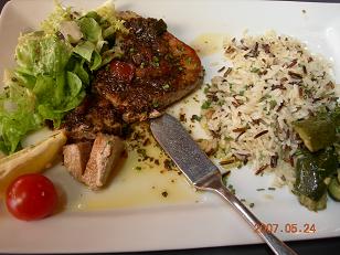 メインはマグロのステーキ。