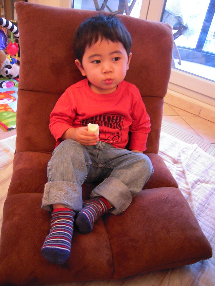 疲れたのか、やりきった感のある様子で座る息子(笑)。