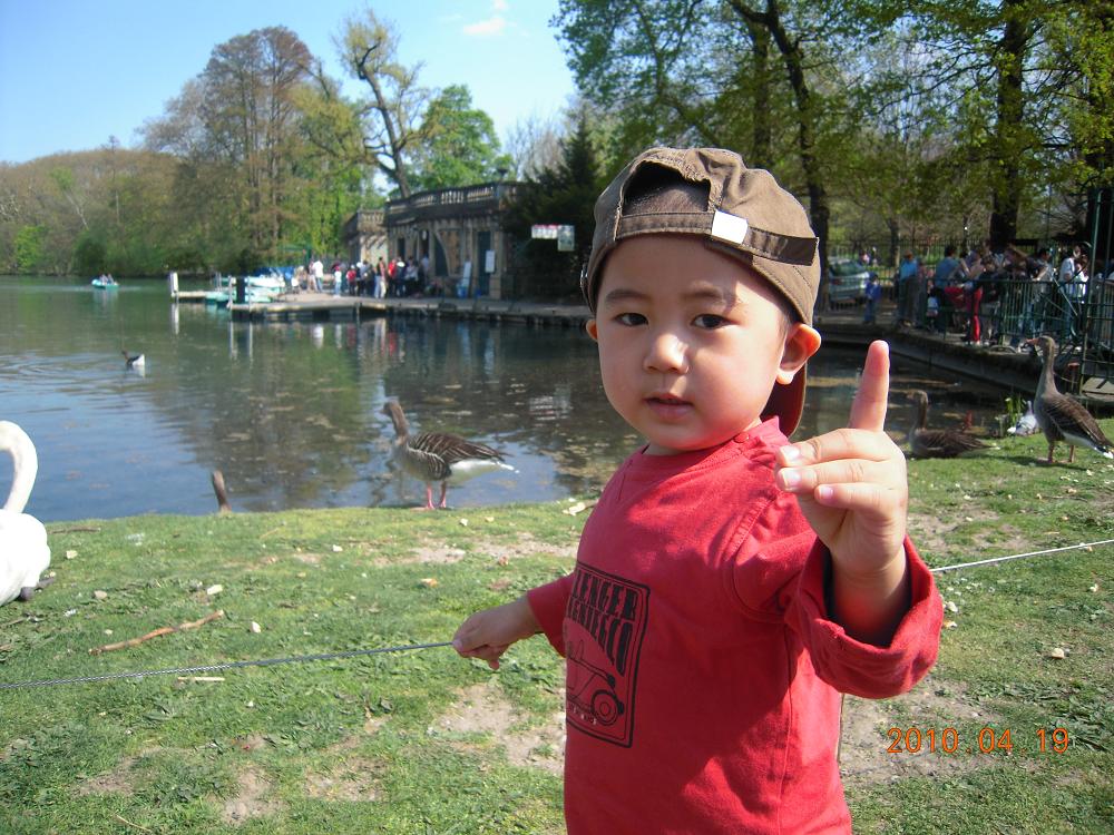 池の周りにたくさんのいろんな鳥がいて、リョウは興味津々。
