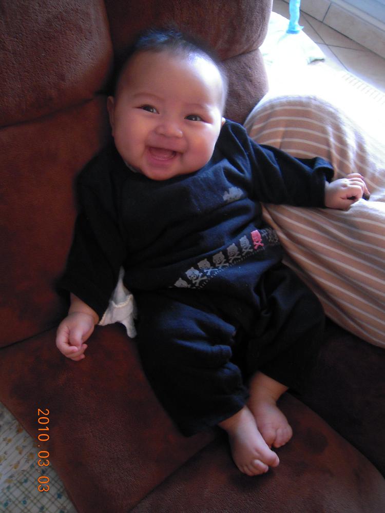 お風呂の時にお湯を頭から掛けても泣かないし、兄より強いっす。